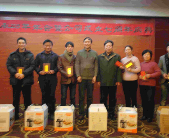 公司對2012年度先進員工獲得者進行了表彰,由王景夏總經理、顧風建副總經理為獲獎者頒發(fā)榮譽證書、獎品和紅包。