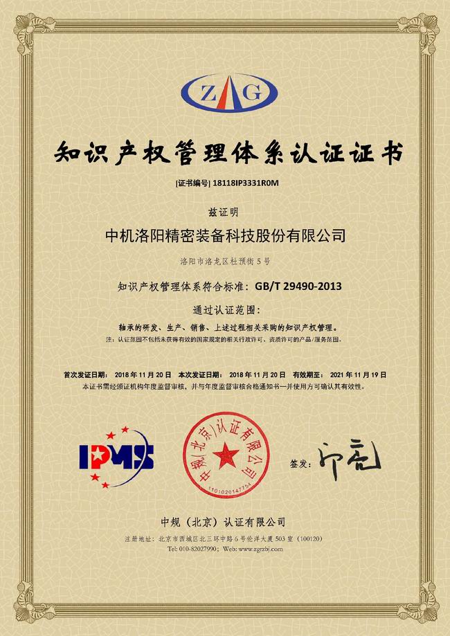 2018年11月12日至13日,中規(guī)(北京)認證有限公司工作人員到我公司進行知識產(chǎn)權管理體系審查認證,經(jīng)過為期兩天的檢查與考核,對公司知識產(chǎn)權管理給予了肯定,最終頒發(fā)“知識產(chǎn)權管理體系認證證書”。